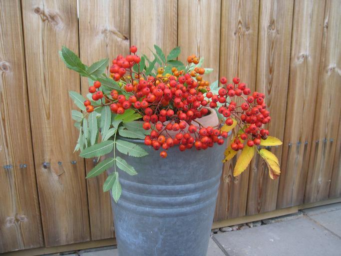 Keywords: rowan berries pot wall stones colors leaf
