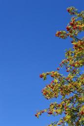 Keywords: rowan sky berry red leaves branch summer fruit in the summer time fresh green nature green leaves plant bright summer day greens