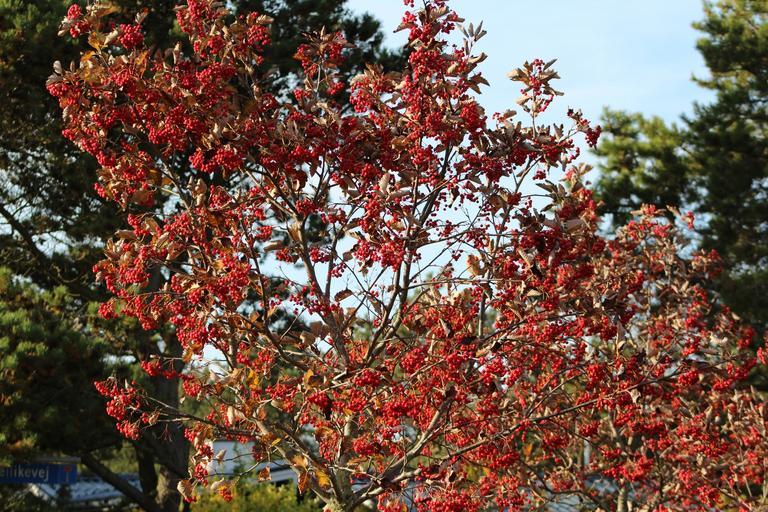 Keywords: rowanberries bush fruits nature red berry red berries hedge