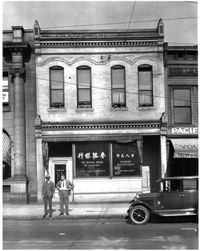 | Keywords: blackandwhite monochrome building architecture outdoor black and white DESCRIPTION: Chinese branch of the Royal Bank, Vancouver, British Columbia VPL Accession Number: 8944A Date: 1926 Photographer/Studio: Thomson, Stuart SUBJECTS: Banks and banking, Buildings More information on our historical photograph collection: www.vpl.ca/historicalphotos DESCRIPTION: Chinese branch of the Royal Bank, Vancouver, British Columbia VPL Accession Number: 8944A Date: 1926 Photographer/Studio: Thomson, Stuart SUBJECTS: Banks and banking, Buildings More information on our historical photograph collection: www.vpl.ca/historicalphotos |