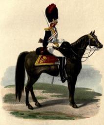 | Keywords: Royal Horse Guards uniform (1834).png Royal Horse Guards of the British Army in 1834 Plate taken from An historical record of the Royal Regiment of Horse Guards; or Oxford Blues London Parker Furnivall Parker 1847 http //www archive org/details/historicalrecord00packiala Digitised copy Author 1847 PD-Art Royal Horse Guards Historical uniforms of the British military Uniforms of the British Army Bearskin hats in art | ||||