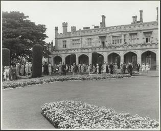 | Keywords: archives state records nsw staterecordsnsw newsouthwales blackandwhite queen royal visit royalvisit government house governmenthouse royalty people women garden outdoor black and white Title: Royal visit 1963 - Garden Party at Government House, Sydney NSW Dated: 02/03/1963 Digital ID: NRS4542-1[12_2048-1]_61666 This photograph is part of NRS 4542 -"Subject bundles [Governor]" a full description of the series can be found in Archives Investigator. This photograph shows guests at the Garden Party held for H.M the Queen and H.R.H The Duke of Edinburgh at Government House in Sydney on Saturday the 2nd March 1963. Approximately 2500 guests were invited to attend. Rights: www.records.nsw.gov.au/about-us/rights-and-permissions We'd love to hear from you if you use our photos/documents. Many other photos in our collection are available to view and browse on our website using Photo Investigator. Title: Royal visit 1963 - Garden Party at Government House, Sydney NSW Dated: 02/03/1963 Digital ID: NRS4542-1[12_2048-1]_61666 This photograph is part of NRS 4542 -"Subject bundles [Governor]" a full description of the series can be found in Archives Investigator. This photograph shows guests at the Garden Party held for H.M the Queen and H.R.H The Duke of Edinburgh at Government House in Sydney on Saturday the 2nd March 1963. Approximately 2500 guests were invited to attend. Rights: www.records.nsw.gov.au/about-us/rights-and-permissions We'd love to hear from you if you use our photos/documents. Many other photos in our collection are available to view and browse on our website using Photo Investigator. |