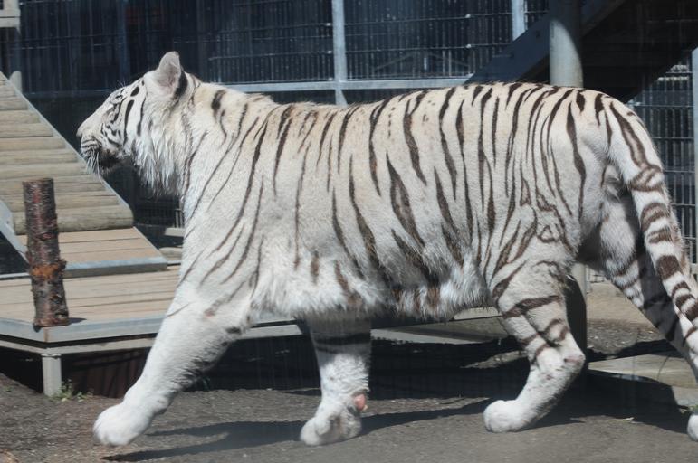 Keywords: Panthera tigris tigris. CC0 waiver: To the extent possible under law, I waive all copyright and related or neighboring rights to this work. Panthera tigris tigris. CC0 waiver: To the extent possible under law, I waive all copyright and related or neighboring rights to this work. Royal White Bengal Tiger walking profile at Cougar Mountain Zoological Park.jpg en Profile portrait of a Royal White Bengal Tiger walking in its cage at Cougar Mountain Zoo Own Dcoetzee 2009-07-03 15 27 32 47 33 11 N 122 4 49 W region US cc-zero White tigers at Cougar Mountain Zoo Side views of animals Walking animals Panthera tigris tigris. CC0 waiver: To the extent possible under law, I waive all copyright and related or neighboring rights to this work.