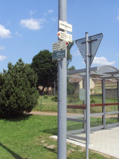 Keywords: Rozcestník Blíževedly.JPG cs Rozcestník je na náměstí poblíž morového sloupu own Zákupák 2013-07-10 Hiking and footpath fingerposts in Česká Lípa District Blíževedly