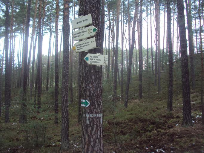 Keywords: Rozcestník Jelení vrch.JPG cs Rozcestník pod Jelením vrchem Hradčanské stěny own Zákupák 2013-04-06 Hradčanské stěny Hiking and footpath fingerposts in Česká Lípa District
