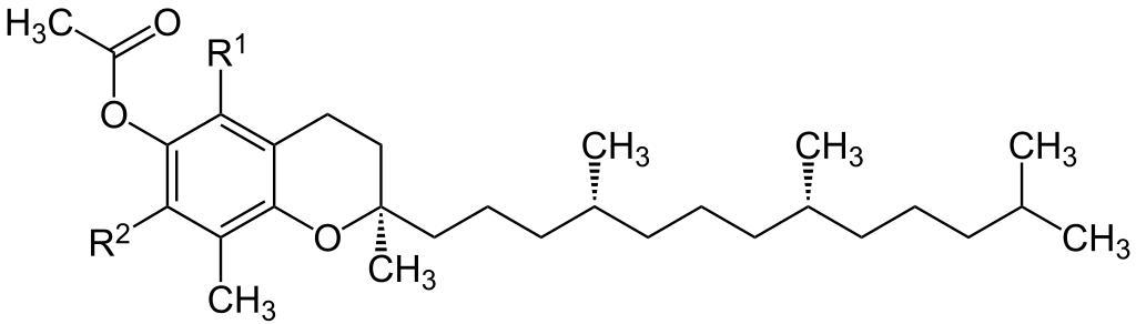 Keywords: (RRR)-Tocopheryl Acetate Structural Formulae V.1.svg en RRR -Tocopheryl_Acetate_Structural_Formulae de RRR -Tocopherylacetat_Strukturformel own Jü 10/09/2011 Please note Synthetic Tocopheryl_Acetate is a mixture of eight stereoisomers The formulae presented here shows only one RRR -isomer of the eight stereoisomers Vitamin E Cc-zero |