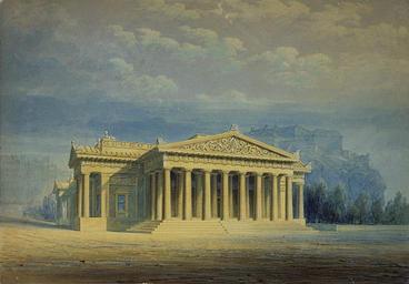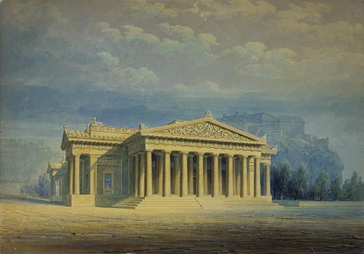 | Keywords: RSA Edinburgh by George Meikle Kemp.jpg The Royal Institution Edinburgh now the Royal Scottish Academy watercolour and pen 31 30 x 44 90 cm National Galleries of Scotland http //www nationalgalleries org/collection/online_az/4 322/result/0/6202 initial K artistId 3766 artistName George 20Meikle 20Kemp submit 1 ~ 1840 George Meikle Kemp pd-art Royal Scottish Academy George Meikle Kemp | ||||