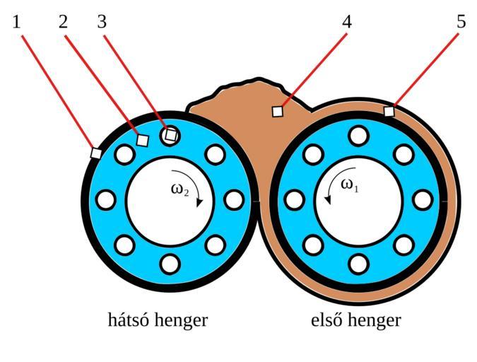 | Keywords: Rubber mill1.svg en Mill for rubber mixing and processing hu Gumiipari hengerszék 1 hengerpalást 2 kéregöntvény 3 hűtővíz keringető furatok 4 forgó szakáll 5 keverékpalást Own kifoc 2010 01 05 Rubber industry Mixing Drawings of rolling mills SVG machinery |