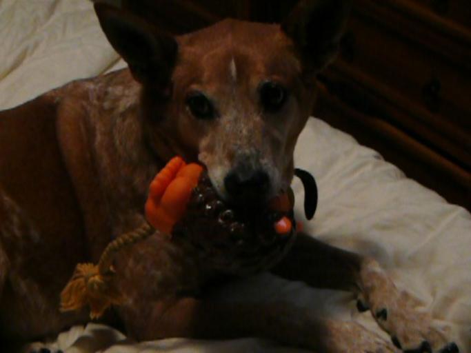 Keywords: Ruby - Super Dog.JPG Australian Cattle DogAustralian Cattle Dog - Red Heeler Summary en Ruby - Mature Aged Female Red Heeler Super Dog own Geebee67 2010-04-30 cc-zero Australian Cattle Dog Female dogs Dogs carrying toys