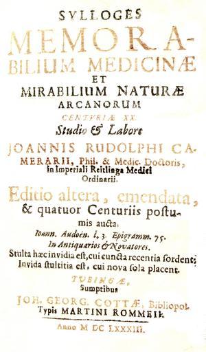 Keywords: Rudolf Jacob Camerarius.jpg pl Strona tytułowa Sylloges memorabilium medicinae et mirabilium naturae arcanorum centuriae wydanie drugie z 1683 r own St Mons 1683 Rudolf Jacob Camerarius Uncategorized 2015 April 9