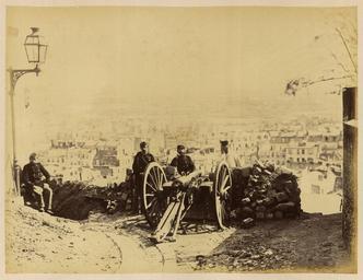 | Keywords: Rue des Rosiers- Montmartre Hills WDL1248.png Artwork ru Б аквейе Б уно 1823 1875 гг fr Braquehais Bruno 1823-1875 en Braquehais Bruno 1823-1875 zh 布鲁诺·布拉奇海 ,1823-1875 年 pt Braquehais Bruno 1823-1875 ar براكهيه برونو، 1823-1875 es Braquehais Bruno 1823-1875 ru Улица Розье холмы онма т а fr Rue des Rosiers buttes Montmartre en Rue des Rosiers Montmartre Hills zh 蔷薇街:蒙马特山 pt Rue des Rosiers colinas Montmartre ar شارع روزييه تلال مونمارتر ru П ичиной ф анко-п усской войны стал ост нап яженности в отношениях между Ф анцией и П уссией в 1860-х гг Ф анция п и импе ато е аполеоне III была полна ешимости п ове ить астущую силу П уссии и отомстить за то что она ассмат ивала как яд дипломатических унижений П уссия п и канцле е Отто фон Бисма ке считала что война ге манских госуда ств п отив Ф анции под уководством П уссии станет ешающим шагом к созданию единой Ге манской импе ии Конфликт начался 19 июля 1870 г когда Ф анция объявила войну Ф анцузская а мия оказалась ужасно неподготовленной и поте пела сок ушительное по ажение в битве п и Седане отк ыв до огу на Па иж К 19 сентяб я немцкие войска полностью ок ужили го од и начали осаду кото ая п одлилась более четы ех месяцев От езанные от поставок п одовольствия из сельской местности па ижане пытались выжить питаясь собаками кошками и даже животными из па ижского зоопа ка Де евья на Елисейских полях и в па ках были вы ублены и использованы в качестве топлива 5 янва я немецкие войска начали бомба ди овку го ода кото ая п одолжалась по несколько часов каждую ночь в течение 23 суток а ок естности Па ижа было сб ошено около 12 000 сна ядов кото ые убили около 400 человек Па иж сдался 28 янва я в сущности положив конец войне За по ажением ф анцузов последовало на одное восстание и установление в а те 1871г Па ижской коммуны еволюционного п авительства сфо ми ованного в соответствии с ана хистскими и социалистическими п инципами Коммуна была жестоко подавлена в мае 1871 г ф анцузскими войсками п авительства Адольфа Тье а Во в емя неп одолжительного конт оля над Па ижем коммуна ы аз ушали импе ато скую колонну на Вандомской площади Подавление коммуны п ивело к дальнейшим значительным аз ушениям в го оде когда коммуна ы подожгли дво ец Тюиль и Лув и д угие здания К оме того многие здания пост адали или были аз ушены во в емя отчаянной пе ест елки между коммуна ами и конт еволюционными силами Siege de Paris 1870 1871 Осада Па ижа 1870 1871 гг п едставляет собой альбом из 110 фотог афий сделанных Огюстом Б уно Б аквейе 1823 1875 гг ф анцузским фотог афом и п ог ессивным фотожу налистом документи овавшим осаду и последствия бомба ди овок а также аз ушения п оизошедшие во в емя Па ижской коммуны <br>Ба икады; Пушки; Го ода и поселки; Ф анко-п усская война 1870 1871 гг ; Память ми а; Улица Розье Па иж Ф анция ; Солдаты fr La guerre franco-allemande fut provoquée par l escalade des tensions entre la France et la Prusse dans les années 1860 La France sous l empereur Napoléon III était déterminée à contenir la croissance de la puissance prussienne et à venger ce qui était considéré comme une série d humiliations diplomatiques La Prusse sous le chancelier Otto von Bismarck considérait qu une guerre dirigée par la Prusse et menée par les États allemands contre la France serait un acte décisif menant à la création d un empire allemand unifié Le conflit débuta le 19 juillet 1870 jour où la France déclara la guerre L armée française s avéra terriblement mal préparée et subit une défaite désastreuse lors de la bataille de Sedan laissant la voie libre vers Paris Le 19 septembre les Allemands encerclèrent complètement la ville et commencèrent un siège qui allait durer plus de quatre mois Coupés du ravitaillement provenant de la campagne les Parisiens survécurent en mangeant les chiens les chats et même la plupart des animaux du zoo de Paris Les arbres des Champs-Élysées et des parcs furent coupés et brûlés pour servir de combustible Le 5 janvier les armées allemandes entreprirent le bombardement de la ville qui dura plusieurs heures chaque n