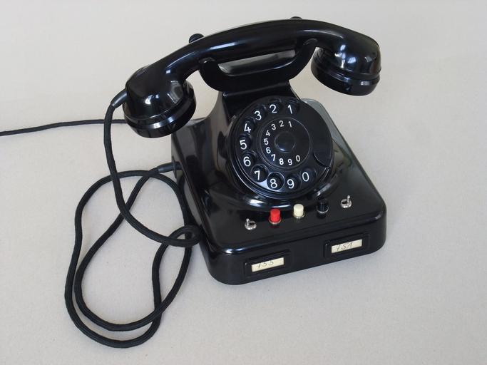 Keywords: RueckfrageApparat W51-02.jpg Rückfrageapparat W51 ca 1959 German telephone W51 about 1959 Own 2011-08-22 Hubert Berberich HubiB public domain Rotary dial telephones Black telephones