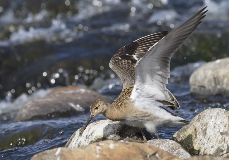Keywords: ruff power river rapids water flow bird summer puurijärvi