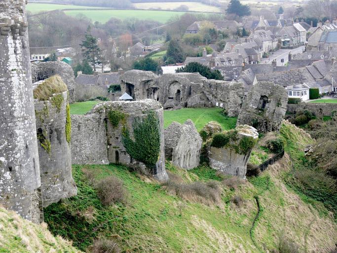 Keywords: ruins corfe corfe castle castle stone tower stone walls village green