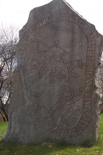 | Keywords: Runsten Uppland 35.jpg Runestone U 35 in Ekerö municipality located on Färingsö close to Svartsjö castle 3 meters tall and 2 meters wide carved on thin granite http //www runestonecarver com/old-runestone/u35/3-huvud html The stone shows two animals and a runic inscription Text - Old Norse Aðisl ok Asl/Ôsl ok OlafR þæiR letu ræisa stæin þennsa at Vigisl faður sinn boanda ÆrnfriðaR English translation Adils and Ösel and Olov they let raise this stone after Vigisl their father husband of Ärnfrids 10009500340001 Sånga 34 1 en wikipedia Ranveig CommonsHelper 2005-07-12 Mceder wikipedia en who says I took this picture in Sweden 2005 100px original upload log page en wikipedia Runsten_Uppland_35 jpg 2005-07-12 03 54 Mceder 707×1065× 396117 bytes <nowiki> PD I took this picture in Sweden 2005 </nowiki> DEFAULTSORT U0035 Runestones Uppland Runestones of Ekerö Municipality |