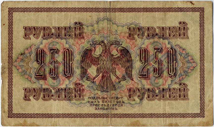 Keywords: Russia-1917-Banknote-250-Reverse.png Provisional Government of Russia banknote 1917 250 rubles reverse Госуда ственный к едитный билет В еменного п авительства России 1917 год 250 ублей об атная сто она own <br /> Banknote is courtesy of collector who wants to remain anonymous Thank you Банкнота п едоставлена коллекционе ом пожелавшим остаться анонимным Спасибо 1917 Provisional Government of Russia PD-RusEmpire PD-old currency Banknotes of Russia 1917 Banknotes with a face value of 250 Swastikas on banknotes |