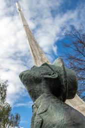 Keywords: russia borovsk old town tsiolkovsky monument cosmist cosmos astronautics rocket science clear sky flight clouds blue sky rocket scientist genius