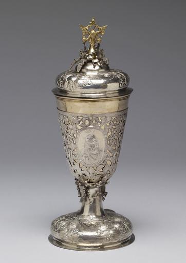 Keywords: Russian - Covered Cup with Large Foot - Walters 57807 - View B.jpg Around the body of the cup is a silver envelope with pierced designs and three portrait medallions in repoussé The finial of the cover is designed as a double-headed eagle 1745 Early Modern silver parcel gilt cm 14 7 accession number 57 807 24053 Alexandre Polovtsoff Aleksandr Aleksandrovich Polovtsov St Petersburg and Paris by purchase Henry Walters city Baltimore Walters Art Museum Henry Walters Acquired by Henry Walters 1930 Bears the marks of an unknown maker 'VD' who was active 1741-1753 It also bears the assayer's mark of Andrei Zaitsev who was active from 1735-1749 Several marks on rim Moscow 1745 Russian Art Icons and Decorative Arts from the Origin to the Twentieth Century The Walters Art Gallery Baltimore 1959-1960 place of origin Moscow Russia Walters Art Museum license Decorative and applied arts of Russia Media contributed by the Walters Art Museum needs category review Collections of the Walters Art Museum