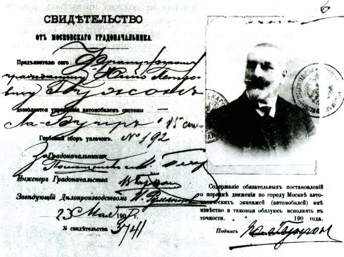 | Keywords: Russian driving licence 1908.jpg 1908 driving licence issued in Moscow Russia to a French citizen owner of steel mill in Moscow Jules Guznon <small>verify actual French spelling here it's transliterated back from Russian</small> The license is valid only for driving a specific La Buire 15 h p сar Guzhon had another licence to drive a 20 h p Westinghouse car Водительские п ава выданные в оскве в 1908 известному капиталисту Юлию Гужону Эти п ава п ивязаны к единственному автомобилю Ла-Буи в 15 лошадиных сил У Гужона была ещё одна машина 20-сильный Вестингауз и соответственно д угие п ава Scan from « осковский А хив» выпуск 1 осго а хив 1996 ISBN 5-7728-0027-9 c 504 1908 Official driving permit photographer unknown PD-RusEmpire Driver's licenses of Russia 1908 texts Documents of the Russian Empire 1908 1908 in Moscow |