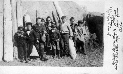 Keywords: Russian and Native boys leaning up against a barabara, Karluk, Alaska, June 1906 (COBB 0).jpeg check categories 28 December 2015 3 Photograph Creator John Nathan Cobb From John Cobb field notebook Russian and Indian boys Karluk Alaska June 1906 Subjects LCTGM Eskimos--Children--Alaska--Karluk; Russians--Children--Alaska--Karluk; Group portraits Subjects LCSH Eskimo children--Alaska--Karluk; Russian American children--Alaska--Karluk; Children--Alaska--Karluk; Boys--Alaska--Karluk; Children--Clothing and dress depicted place United States--Alaska--Kodiak Island--Karluk 1906 silver gelatin b w Institution University of Washington UWASH-JNCobb-source accession number 0 PD-old-auto-1923 1930 Information field Order Number COB240 Images from the John N Cobb Photograph Collection to check Russians in Alaska Group portraits Boys |