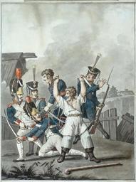 | Keywords: Russian peasant fighting with dragoons - I.Tupylev (1813-14).jpg  ru Тупылев Иван Филиппович Схватка  усского к естьянина с д агунами 1813-14 1813-14 скан из книги Тупылев И Ф PD-old-100-1923 Uploaded with UploadWizard Agitation during Patriotic War 1812 Ivan Tupylev |