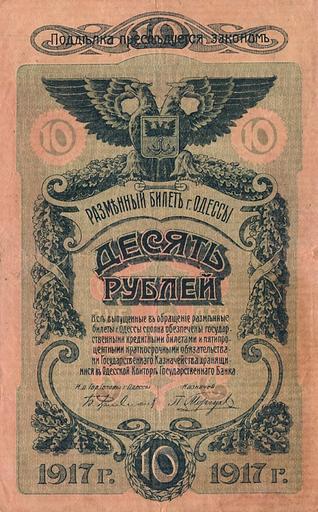 Keywords: RussiaPS336-10Rubles-1917 f.jpg Одесские деньги - 10 ублей аве с http //aes iupui edu/rwise/countries/ 1917 Одесское казначейство 1917 год выпуска Одесса PD-RU-exempt banknotes PD-UA-exempt banknotes PD-old-70 original upload log page ru wikipedia RussiaPS336-10Rubles-1917_f jpg 2007-09-23 01 47 Vizu 472×760× 164733 bytes <nowiki> Описание Авто В емя создания Источник </nowiki> Banknotes of Odessa 1917 1919 Eagles on banknotes Banknotes with a face value of 10 Coat of arms of Russian state projects 1918-1919 |