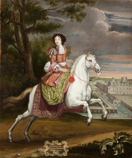 | Keywords: Ryttarporträtt på Catrine de Neuville Comtesse d´Armagnacq, 1670-tal - Livrustkammaren - 100375.tif Catherine de Neufville d'Harcourt-Armagnac hertiginna plain text sv Helfigur till häst Klädd i grön damastkjol och röd guldbroderad höftlång jacka Vit spetshalsduk med violett rosett Vitt skärp Vit häst med violett guldbroderat täcke Spö och tyglar i händerna I fonden palatset Chateau de Fontainbleau innan ombyggnaden <br/>På dukens baksida Pour Monseigr Le Duc Daumont<br/>Förgylld snidad ram med akantusblad En försilvrad mussla på vardera sidan Ramlistens bredd 113 mm Ny kilad spännram Dubblerad duk <br/>Catrine de Neuville Comtesse d´Armagnacq Louis I <br/> Catherine de Neufville-Villeroy 1639-1707 grevinna syster till marskalk de Villeroy 7/10-1660 g m Louis I hertig av Lorraine-Harcourt-Armagnac 1641-1718 original caption Ryttarporträtt på Catrine de Neuville Comtesse d´Armagnacq 1670-tal <br/> Nyckelord Kvinna Konst Ryttarporträtt 1670-talet Föremålsbild decade 1670 size mm 580 685 SKO Nils Bielke Antoine d' Aumont hertig Ridkonst 2003-2004 Skoklosters slott Trofast - hov och tass i kunglig tjänst 2010-2011 Livrustkammaren Trogna vänner - Kungliga hästar och hundar 2011-2012 Museiverket/Finlands nationalmuseum André Le Nôtre in perspective 1613-2013 2013-2014 Palace of Versailles place of origin original filename sm_dig9487 24475 inventory number SKO 3149 100375 PD Jens Mohr <gallery caption Different images of same object > File Porträtt Ryttarporträtt Catrine de Neuville Comtesse d´Armagnacq - Skoklosters slott - 56658 tif </gallery> Art works Equestrian portraits 1670s Women Portraits Jens Mohr Media contributed by LSH unmatched creator Media contributed by LSH 2015-11 Color images from Livrustkammaren |