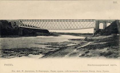 Keywords: Rzhevbridge-f.jpg 56 26303 34 289335 ru Довоенный железнодо ожный мост че ез Волгу во Ржеве en Pre-war rail bridge in Rzhev before 1903 http //rzev ru/modules/photo/viewcat php id 1385 cid 10 min 0 orderby clicD show 30 Maxim Dmitriev 1858 1948 custom PD-RusEmpire Uploaded with UploadWizard Rzhev railway bridge Photos of Tver Governorate by Maxim Dmitriev