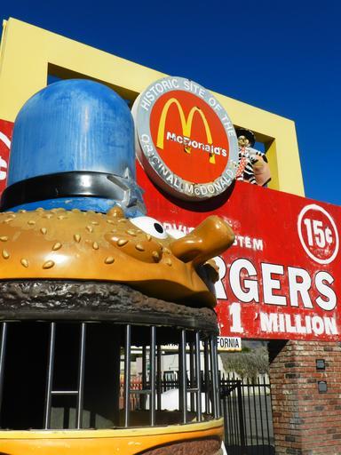 | Keywords: mcdonalds mcdonalds museum mcdonaldsmuseum san bernardino sanbernardino route 66 route66 califronia route 66 san bernardino route66sanbernardino route 66 california route66california sign text outdoor A Hamburger jail and original golden arches at the McDonald's Museum in San Bernardino CA The McDonald's Story is an interesting one. Ray Kroc sold equipment to the McDonald brothers and their Dad, he liked the taste of their hamburgers and shakes and decided to buy the place. This original McDonalds is in San Bernardino, and is no longer a working McDonalds, but it is a museum. You can see every happy toy ever made. www.route66west2east.com A Hamburger jail and original golden arches at the McDonald's Museum in San Bernardino CA The McDonald's Story is an interesting one. Ray Kroc sold equipment to the McDonald brothers and their Dad, he liked the taste of their hamburgers and shakes and decided to buy the place. This original McDonalds is in San Bernardino, and is no longer a working McDonalds, but it is a museum. You can see every happy toy ever made. www.route66west2east.com |