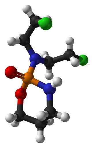 | Keywords: S-cyclophosphamide-from-xtal-1996-3D-balls.png Ball-and-stick of the S enantiomer of cyclophosphamide as found in the crystal structure of racemic cyclophosphamide C<sub>7</sub>H<sub>15</sub>Cl<sub>2</sub>N<sub>2</sub>O<sub>2</sub>P Colour code Carbon C black Hydrogen H white Nitrogen N blue Oxygen O red Phosphorus P orange Chlorine Cl green Crystal structure from http //dx doi org/10 1107/S0108270196004866 Acta Cryst 1996 C52 2359 “2363 Model manipulated in http //www crystalmaker com/ CrystalMaker 8 3 Image generated in http //accelrys com/products/discovery-studio/visualization/discovery-studio-visualizer html Accelrys DS Visualizer Own 2011-02-05 Ben Mills Benjah-bmm27 Images by Ben Mills Cyclophosphamide |