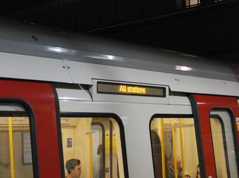 | Keywords: S stock DMI outside.JPG ja ロンドン 下鉄S形電車外側の表示装置 行き先 列車種別 路線が交互表示される en Dot matrix indicator outside London Underground S stock The indicator shows the destination the line and the type of train alternately 2012-10-17 20 39 02 own Hahifuheho cc-zero Uploaded with UploadWizard London Underground S Stock dot matrix displays |
