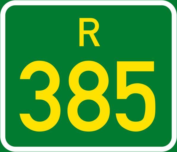 Keywords: SA road R385.svg en South Africa R385 road sign own Htonl 2014-09-02 385 number Diagrams of regional road number signs of South Africa