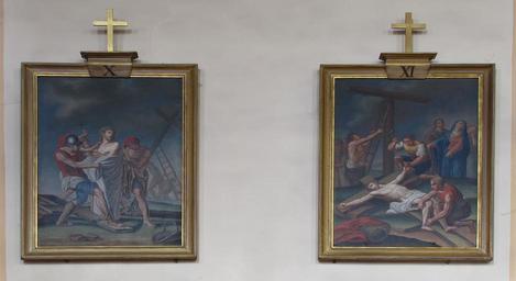 Keywords: Saasenheim StJeanBaptiste 40.JPG Alsace Bas-Rhin Saasenheim Église Saint-Jean-Baptiste Chemin de croix XIXe Louis Sorg own 2013 Ralph Hammann cc-by-sa-3 0 Artwork / Œuvre d'art / Kunstwerk oil canvas 91 cm de large Église Saint-Jean-Baptiste Saasenheim IM67014505 object history Chemin de croix pouvant être attribué au peintre strasbourgeois Marie Joseph Louis Sorg 1791-1870 et réalisé au courant du 2e quart du 19e siècle L'attribution est faite par comparaison avec les chemins de croix peints par cet artiste dont celui de l'église paroissiale Marie-Auxilliatrice de Lichtenberg consacré en 1829 celui de l'église paroissiale Saint-Pierre - Saint-Paul de Heimersdorf signé et daté de 1835-1836 et celui de l'église paroissiale Saint-Hippolyte de Flexbourg daté de 1844 other versions Ralph Hammann PD-old accession number Photographs of Saasenheim by Ralph Hammann Taken with Canon PowerShot SX20 IS Interior of Église Saint-Jean-Baptiste de Saasenheim Stations of the Cross in Alsace Station 10 Jesus is stripped of His garments Station 11 Crucifixion Jesus is nailed to the cross Church paintings in Bas-Rhin Neoclassical church paintings in Alsace 19th-century church paintings in Alsace |
