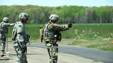| Keywords: m9 pistol command sergeant major commandsergeantmajor csm 34th infantry division 34thinfantrydivision saber strike saberstrike strong europe strongeurope estonia u.s. army usarmy army outdoor motorcycle bike vehicle 34th Infantry Division Command Sgt. Maj. John Lepowsky coaches a firer on the M9 pistol qualification range at Camp Ripley, Minn., May 6, 2016. Red Bulls of the 34th Infantry Division headquarters are preparing for exercise Saber Strike 16 in Estonia. Saber Strike, a long-standing U.S Army Europe-led cooperative training exercise. This year’s exercise, which will take place from May 26 to June 21, will facilitate cooperation amongst the U.S., Estonia, Latvia, and Lithuania to improve joint operational capability in a range of missions as well as preparing the 13 participating nations to support multinational contingency operations. (Minnesota National Guard photo by Sgt. Sirrina Martinez/Released) 34th Infantry Division Command Sgt. Maj. John Lepowsky coaches a firer on the M9 pistol qualification range at Camp Ripley, Minn., May 6, 2016. Red Bulls of the 34th Infantry Division headquarters are preparing for exercise Saber Strike 16 in Estonia. Saber Strike, a long-standing U.S Army Europe-led cooperative training exercise. This year’s exercise, which will take place from May 26 to June 21, will facilitate cooperation amongst the U.S., Estonia, Latvia, and Lithuania to improve joint operational capability in a range of missions as well as preparing the 13 participating nations to support multinational contingency operations. (Minnesota National Guard photo by Sgt. Sirrina Martinez/Released) |