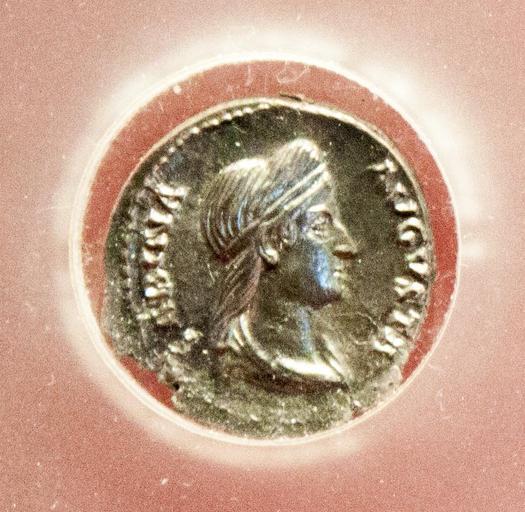 Keywords: Sabina (wife of Hadrianus) (Roman coin).jpg Commonist own photo by Szilas in the Aquincum Museum 2013-06-15 11 58 18 Szilas pd-old Ancient Roman coins in the Aquincum Museum Coins of Hadrianus