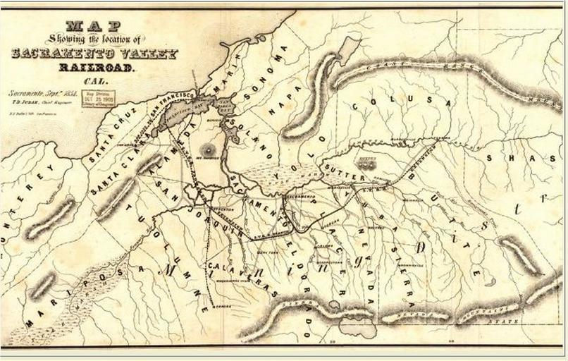 | Keywords: Sacramento Valley Railroad 1854.jpg This is a map from the following URL http //memory loc gov/cgi-bin/query/r ammem/gmd field NUMBER+ band g4361p+rr005520 Map showing the location of Sacramento Valley Railroad Cal Sacramento Septr 1854; T D Judah Chief Engineer - Library of Congress link showing historic photo of 1854 sketch; From Report of the Chief Engineer of the Preliminary Surveys and Future Business of the Sacramento Valley Railroad Sacramento Democratic State Journal 1854 en Sacramento Valley Railroad en Folsom CA PD-old Rail transport in California Central Valley of California |