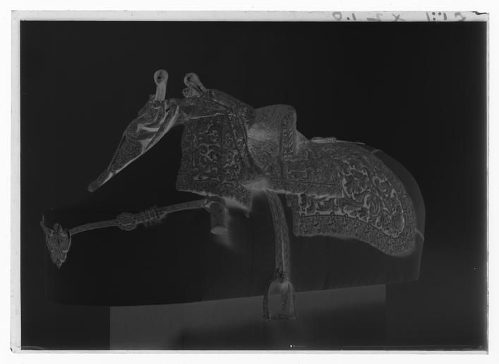 | Keywords: Sadel, bomsadel - Le Plaie - Livrustkammaren - 70021-negative.tif Ingående i franska gåvan till Karl XI 1673 Frankrike 1600-talets mitt För hästen nr 2 Le Plaie Bomsadel av blå sammet med rektangulära kappor med reliefbroderi i form av rankor blommor och stiliserade franska liljor Broderi med guld- och silvertråd Utmed kanterna en ca 40 mm bred bård med yttäckande broderi Frambom ca 520 mm bred och 90 mm hög Bakbom med små stödbommar ca 52 mm bred och 90 mm hög Sitsen och bommarnas insidor av blå sammet med rankformiga stickningar av guldtråd Sitsen och bommarnas utsidor kantade med guldtrådsfrans Sadelknapp av förgyllt silver i form av lejonhuvud Framför frambommen 14 + 9 runda blomformiga tännlikor av förgylld mässing Bakom bakbommen 12 + 14 tännlikor av samma material Bom överklädd med tunt läder Bossor av tunt ljusbrunt läder och naturfärgat linne kantning av ljusblått linneband På var sida två stroppar för sadelgjord samt krampa för stigläder Baktill två öglor av vitt läder samt ögla av läder för svansrem Framtill två söljor av stål för förbygel Framför frambommen två krampor av förgylld mässing för pistolhölster original caption Karl XI s myndighetsförklaring 1673 velvet Färg blå S - SADLAR OCH HÄSTUTRUSTNING material sammet - gold thread S - SADLAR OCH HÄSTUTRUSTNING material guldtråd - silver thread S - SADLAR OCH HÄSTUTRUSTNING material silvertråd - silver S - SADLAR OCH HÄSTUTRUSTNING material silver - brass S - SADLAR OCH HÄSTUTRUSTNING material mässing - leather S - SADLAR OCH HÄSTUTRUSTNING material läder - linen S - SADLAR OCH HÄSTUTRUSTNING material linne size mm 570 size mm 290 sits g 7600 LRK Karl XI av Sverige Basutställning Spelet om Skåne 1993 Modelejon 2002 place of origin original filename LN_B12478_015358 54115 inventory number LRK 17520 70021 CC0 Sadel bomsadel - Le Plaie - Livrustkammaren - 70021 tif <gallery caption Different images of same object > File Bomsadel - Livrustkammaren - 59848 tif File Sadel bomsadel - Le Plaie - Livrustkammaren - 78580 tif File Bomsadel - Livrustkammaren - 42727 tif File Sadel bomsadel - Le Plaie - Livrustkammaren - 17842 tif File Sadel bomsadel - Le Plaie - Livrustkammaren - 1535 tif File Sadel bomsadel - Le Plaie - Livrustkammaren - 61459 tif File Sadel bomsadel - Le Plaie - Livrustkammaren - 10095 tif File Sadel bomsadel - Le Plaie - Livrustkammaren - 35784 tif File Sadel bomsadel - Le Plaie - Livrustkammaren - 1537 tif File Sadel bomsadel - Le Plaie - Livrustkammaren - 77765 tif </gallery> |