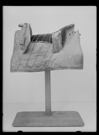 Keywords: Sadel, bomsadel - Livrustkammaren - 77933.tif Bomsadel av brunt läder med stickad dekor av silver- och linnetråd Sits av röd sammet medpåsydda band av flätad silvertråd Rektangulära sadelkappor fodrade med brunt läder <br/><br/><br/>Hög delad frambom 480 mm bred 135 mm hög klädd med brunt läder På insidan röd sammet påutsidan en platta klädd med röd sammet och förgyllda tännlikor <br/><br/>Frambommen kantad med silvergaloner Bakbom 560 mm bred 90 mm hög klädd med brunt läder kantad med silvergaloner överklädd med röd sammet stickningar med flätad silvertråd Påbaksidan av bommen tännlikor i blomform Förgyllda mässingstännlikor framför frambommen ochbakom bakbommen Sadelknapp av förgylld mässing något böjd med räfflor framtill rundad <br/><br/>Bom klädd med läder Bossor av linne fodrade med läder Fyra stroppar av läder försadelgjord Två söljor av stål för förbygeln På framvalvet en remögla På bakbalvet enstålsölja för svanskappa <br/><br/> 4 <br/>Anmärkning Bossorna något trasiga liksom stickningen på sitsen <br/><br/>Inköpt som nr 27 i oktober 1930 från friherre Carl Philip Sack Bergshammar avLivrustkammarstiftelsen till minne av Carl Anton Ossbahr Överlämnad som gåva tillLivrustkammaren den 6 mars 1942 <br/><br/>Katalogisering Inga von Corsvandt 1971-09-08 inmatning-utskrift PAr 1997-06-16 original caption leather Färg brun material läder - silver thread - velvet Färg röd material sammet - leather Färg brun material läder - brass - linen - steel size mm 570 size mm 300 sits LRK Carl Filip Sack friherre 1876-1931 place of origin original filename LN_B06009_008889 41728 inventory number LRK 7657 77933 CC0 Sadel bomsadel - Livrustkammaren - 77933-negative tif Saddles Media contributed by LSH unmatched material Media contributed by LSH dim-with multiple size templates Horse tack images from Livrustkammaren Media contributed by LSH 2013-10 |