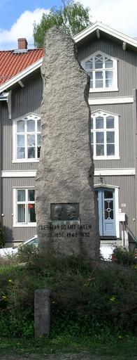 Keywords: Sagatun bauta.jpg Bauta over Herman og Mix Anker Sagatun folkehøgskole Hamar own 2007-05-24 Jensens Hamar Monuments and memorials in Hedmark Herman Anker Menhirs in Norway