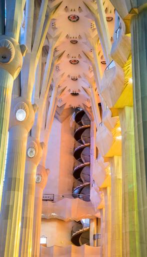 Keywords: sagrada familia cathedral barcelona spain stairwell architecture church famous religion gothic building inside old medieval landmark ancient tourism city religious historic catholic christianity