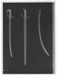 | Keywords: Saif, arabiskt kulturområde, Klingan europeisk (enl.inv 1867 indisk) - Livrustkammaren - 69267-negative.tif Bygelfäste med parerstänger av förgyllt stål med kantiga päronformiga ändar böjda i rak vinkel den bakre nedåt den främre uppåt Den senare förlängd som handbygel och något svängd Två fingerbyglar vars ändar förenas av en parerring på utsidan Krysset neddraget i en spets <br/><br/>Kaveln snidad av mörkt horn med ovalt tvärsnitt upptill framåtböjt och konturerat med genomgående hål På ovansidan genombrutet beslag av silver med graverad dekor på vilket löper en rund ten av stål fäst i tången Kaveln nedtill beslagen med niellerat och punsat silver <br/><br/>Klinga av stål 32 5 mm bred svagt böjt eneggad till det 204 mm långa tvåeggade spetspartiet med tre hålkälar två längre en kortare längs ryggen Klingan ornerad på starka delen på båda sidor med etsade orientaliska ornament och inskriptioner På insidan stämpel med två motställda taggiga C-n omgivna av prickar original caption steel b12 - blankvapen - fäste och klinga material stål - horn b6 - blankvapen - kavel och kavelklädsel material horn - silver b1 - blankvapen - fäste material silver size mm 910 size mm 775 klinga size mm 32 klinga size mm 139 g 860 LRK place of origin original filename LN_B04938_007818 43824 inventory number LRK 7236 69267 CC0 Saif arabiskt kulturområde Klingan europeisk enl inv 1867 indisk - Livrustkammaren - 69267 tif |