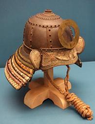 Keywords: Saigabachi style helmet bowl with variegated lacing, Edo period, 17th century - Tokyo National Museum - DSC05914.JPG en Exhibit in the Tokyo National Museum Tokyo Japan This artwork is old enough so that it is in the public domain 2013-09-03 00 10 26 own Daderot cc-zero Japanese armour at the Tokyo National Museum Uploaded with UploadWizard Kabuto