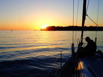 Keywords: sailing boat sunset sea waves horizon