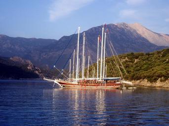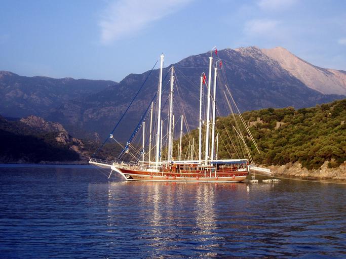 Keywords: sailing boats zweimaster boot sail water mast clouds ship coast sailing vessel sea masts tourist attraction old turkey imposing