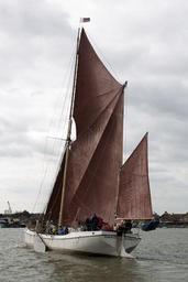Keywords: sailing sailing boat boat thames coal barge full sail red maldon essex uk masts river estuary