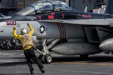 Keywords: Sailor directs an E-A-18G aboard USS George Washington. (10193352754).jpg WATERS TO THE EAST OF THE KOREAN PENINSULA Oct 9 2013 An aircraft handler directs an E/A-18G Growler from the Shadowhawks of Electronic Attack Squadron VAQ 141 aboard the aircraft carrier USS George Washington CVN 73 George Washington and its embarked air wing Carrier Air Wing CVW 5 provide a combat-ready force that protects and defends the collective maritime interest of the U S and its allies and partners in the Indo-Asia-Pacific region U S Navy photo by Mass Communication Specialist Liam Kennedy/Released 131009-N-BD107-122 Join the conversation http //www facebook com/USNavy www facebook com/USNavy http //www twitter com/USNavy www twitter com/USNavy http //navylive dodlive mil navylive dodlive mil http //www flickr com/photos/usnavy/10193352754/ Sailor directs an E/A-18G aboard USS George Washington 2013-10-09 11 43 http //www flickr com/people/56594044 N06 Official U S Navy Page from United States of America MCSN Liam Kennedy/U S Navy Attribution License IPTC Caption-Abstract U S Navy photo PD-USGov-Military-Navy Official U S Navy Imagery http //flickr com/photos/56594044 N06/10193352754 2014-04-03 13 02 54 cc-by-2 0 USS George Washington CVN-73 flight deck EA-18G Growler on flight decks Files uploaded by Russavia Electronic Attack Squadron 141 United States Navy 2013 in aviation |