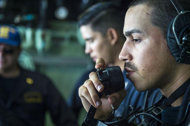 View Original:Sailor operates a sound-powered telephone on the bridge of USS Green Bay. (28793801701).jpg (4675x3111)