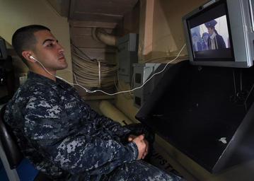 | Keywords: Sailors hang out, call home in ships library DVIDS319413.jpg en Seaman Richard Aguero from Miami watches a movie in the learning multimedia resource center during his off-duty hours aboard the aircraft carrier USS George Washington The LRMC provides Sailors with telephones computers a movie lounge and a library George Washington the Navy's only permanently forward-deployed aircraft carrier is underway ensuring security and stability in the western Pacific Ocean 2010-09-15 Seaman Charles Oki https //www dvidshub net/image/319413 100915-N-+++++-010 2010-09-16 17 04 USS GEORGE WASHINGTON AT SEA PD-USGov-Military-Navy USS George Washington CVN-73 Images from DoD uploaded by Fæ |