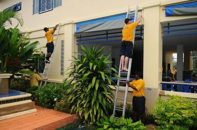 | Keywords: Sailors and Marines play football with children in Thailand 110504-N-IC111-429.jpg en Sailors and Marines assigned to the aircraft carrier USS Ronald Reagan paint the Youth Football Home school building during a community service project Ronald Reagan is currently anchored in Makham Bay Thailand for a scheduled port visit Photo by Petty Officer 3rd Class Kevin B Gray 2011-05-04 Kevin Gray https //www dvidshub net/image/397703 110504-N-IC111-429 2011-05-05 01 04 THALANG PHUKET TH PD-USGov-Military-Navy USS Ronald Reagan CVN-76 Images from DoD uploaded by Fæ |