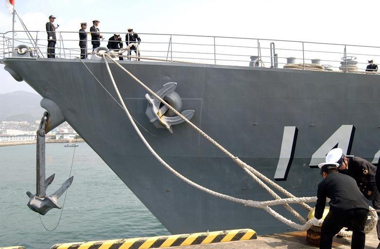 | Keywords: Sailors moor JS Kurama, -16 Mar. 2002 f.jpg SASEBO March 16 2002 - Sailors from the Japan Maritime Self-Defense Force JMSDF moor the ship JDS Kurama DDH-144 in Berth four during a homecoming reception of MSDF ships Kirisame DD-104 Kurama and Hamana AOE-424 March 16 2002 Japan's MSDF have been in the Indian Ocean providing vital logistical support including supplying fuel to U S and coalition ships in the fight against terrorism U S Navy photo by Photographer's Mate 2nd Class AW Jonathan R Kulp Released 2002-03-16 020316-N-HY254-006 Navy http //www defenseimagery mil/imagery html guid ad56a526665a580746ab47d6251aa53ad0e85b73 Jonathan R Kulp U S Navy PD-USGov-Military-Navy brightness optimized トトト JMSDF Sasebo Naval Base JS Kurama DDH-144 March 2002 photographs |